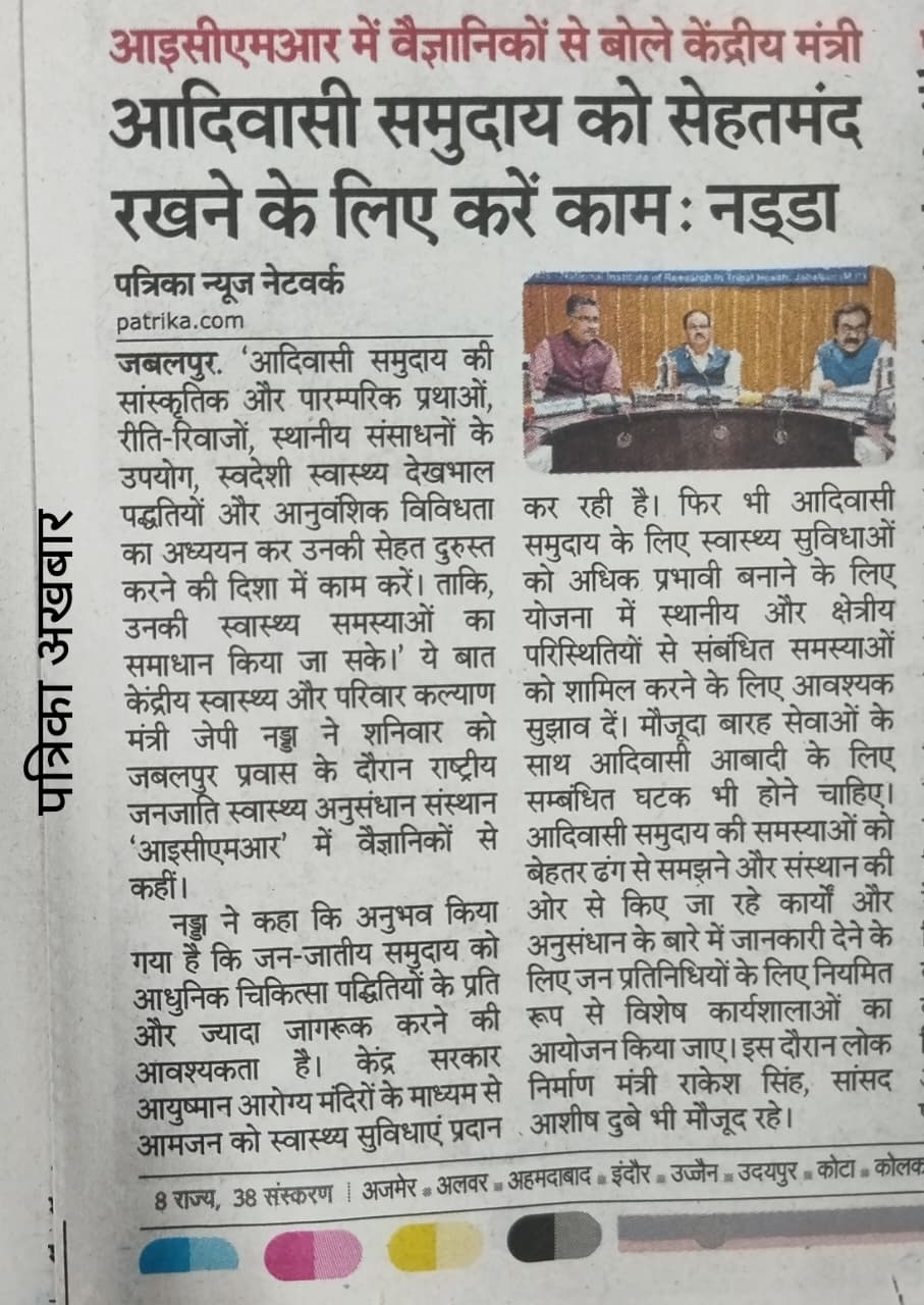 The ICMR-NIRTH Jabalpur team led by Dr. Aparup Das, Director and Dr. KB Saha, Scientist F & NCO recently visited the Baran district of Rajasthan regarding the tuberculosis menace in the Saharia tribe (a PVTG). The visit was extensively covered in the local print media.