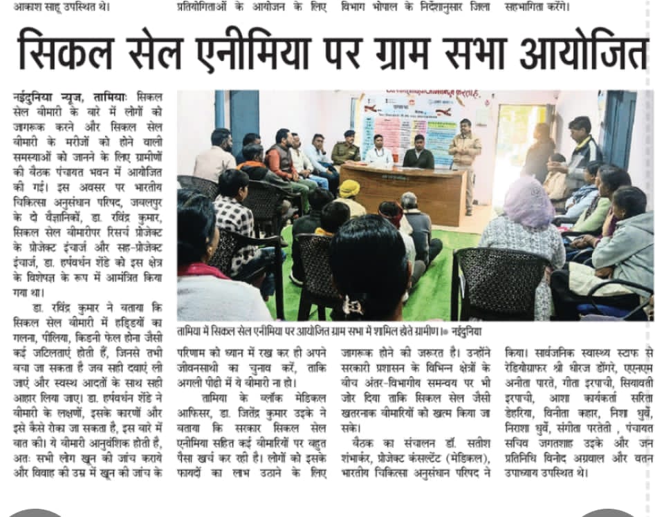 A seminar on Sickle Cell Disease was conducted under the guidance of Dr. P.N.K. Sharma and NIRTH Jabalpur. Experts emphasized the importance of early diagnosis, effective treatment, and raising awareness to combat this genetic disorder impacting tribal communities.